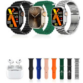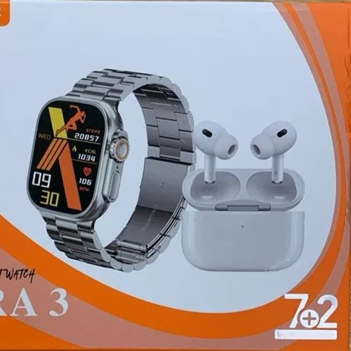 ساعت هوشمند KEQIWEAR مدل KW52 Ultra3 با بند استیل و سیلیکونی به همراه ایرپاد