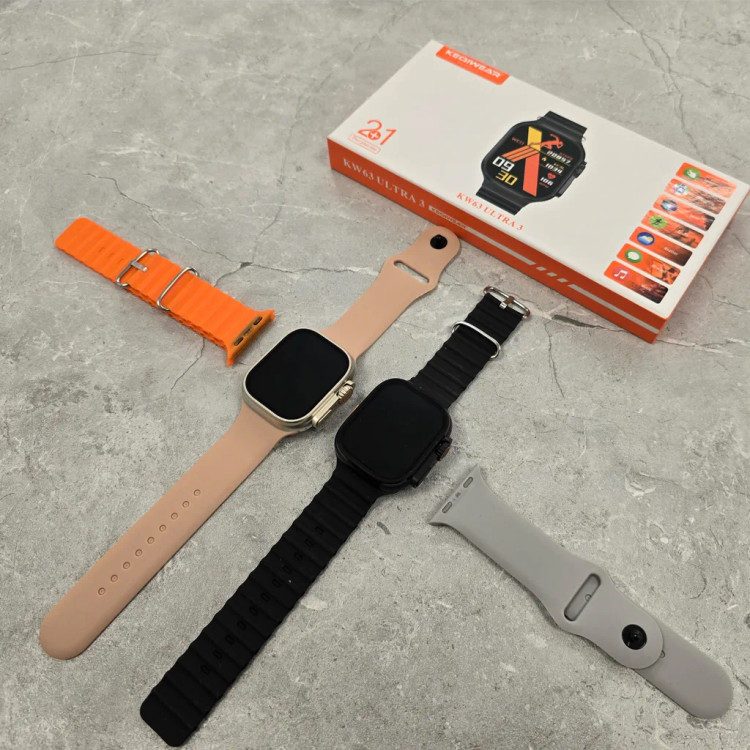 ساعت هوشمند KW63 Ultra3 با بدنه آلومینیومی و بند سیلیکونی